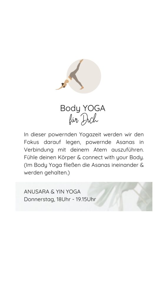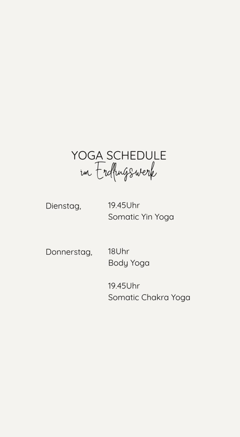 Nachfolgend findest du deine stimmigen Optionen für die Yogazeiten vor Ort. Wähle deine Yogaoption & melde dich bis spätestens 13Uhr vor jeder Yogazeit im Yogastudio Whatsappkanal (online) an!